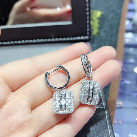Super Sparkling Crystal Hook Zircon Pendant Earrings