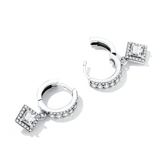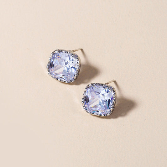 Personality Sparkling Bling Large Square Gemstone Zircon Earrings