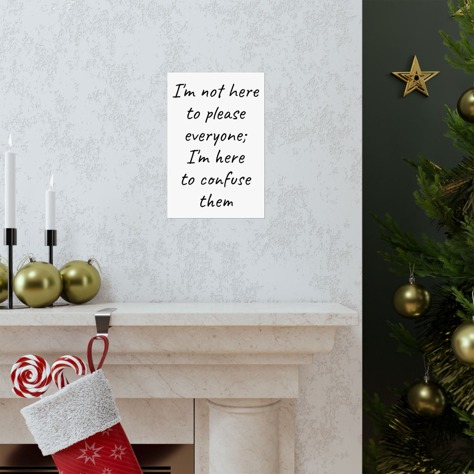 Poster - Matte Vertical 'I Am Not Here To Please Everyone, I'm Here To Confuse Them'