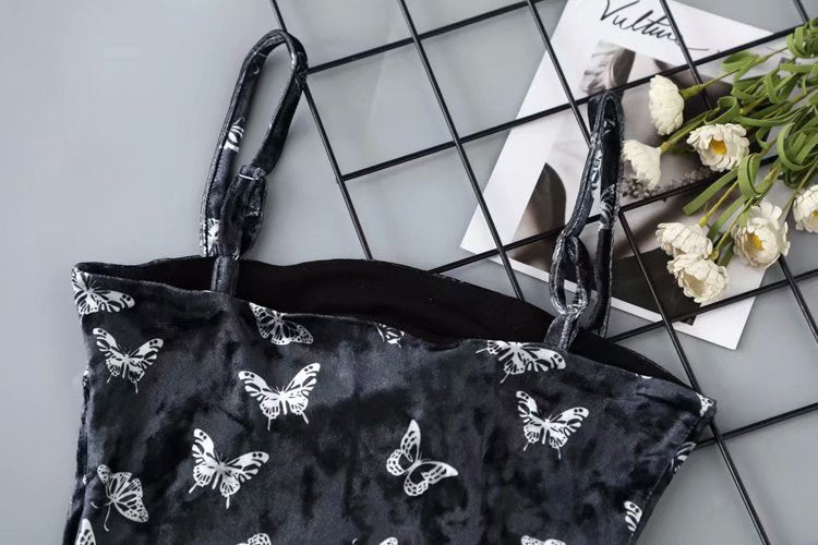 Sexy vintage retro velvet butterfly dress tight club mini dress black strap dress