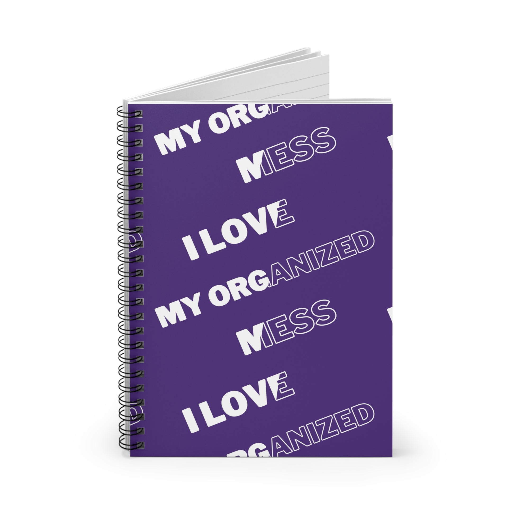 This Spiral Notebook features a front cover that says 'i love my organized mess', giving a fun and quirky vibe. Perfect for those who enjoy staying organized but embrace the chaos of daily life. Ideal for students, professionals, and creatives. Relevant for back-to-school, office gifts, and everyday use.
